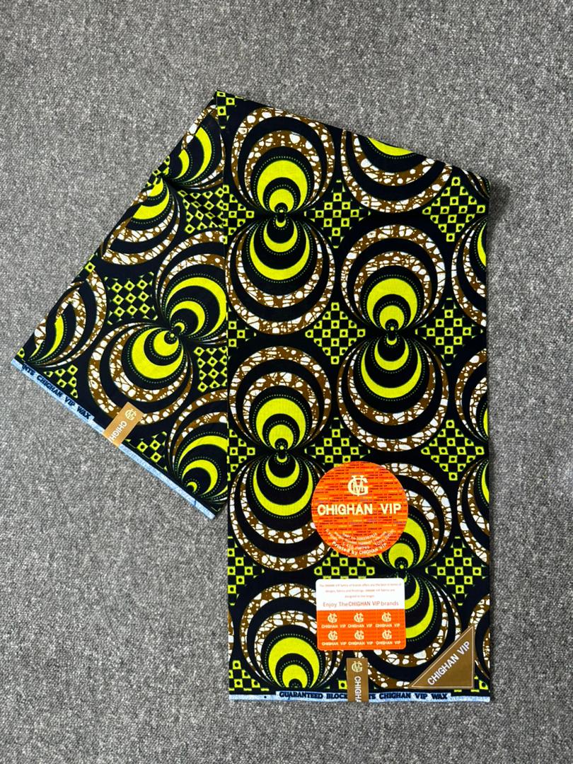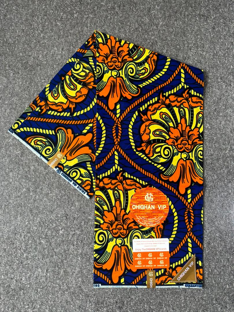 Chichan VIP est un pagne de haute qualité réputé pour son élégance premium et ses motifs finement travaillés. Conçu avec un coton résistant, doux et agréable au toucher, il offre une excellente tenue pour toutes vos créations vestimentaires, qu’elles soient traditionnelles ou modernes.